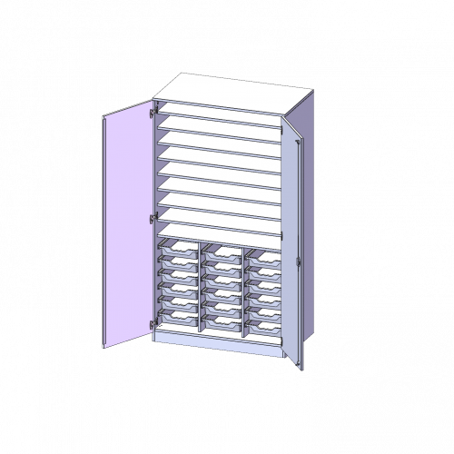B/H/T: 104,5x190x60 cm, 2-türiger Schrank mit 18 flachen ErgoTray Boxen, mit Sockel (81 mm)