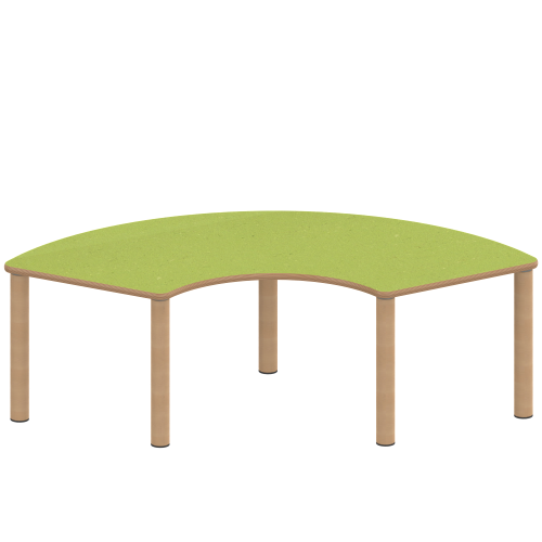Produktinformationen "Tisch ZALOTTI mit Linoleum-Belag Drittelkreistische, Stellfläche B/T: 173x80 cm, Höhen 25…76 cm, Massivholzbeine Ø 60 mm, Fußvariante: Stellfuß"