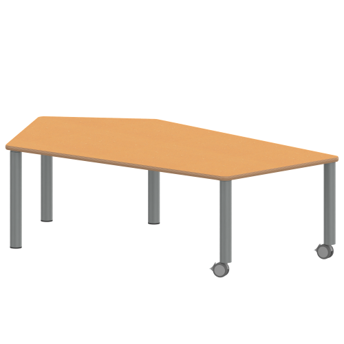 Fünfecktisch-groß, B/H/T: 185x25x104 cm, Stahlrohrbeine Ø 60 mm, Fußvariante: fahrbar