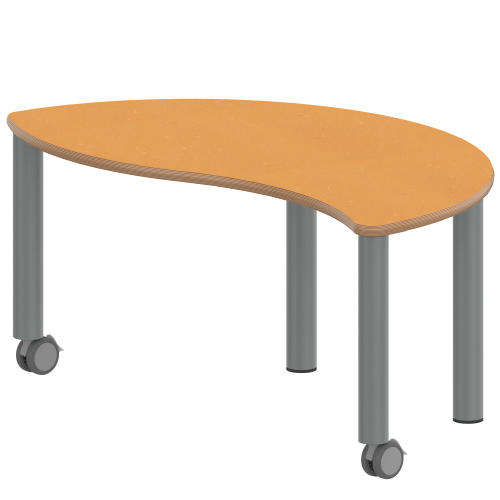 Tisch ZALOTTI mit Linoleum-Belag Halbrund-Wellentische, Stellfläche B/T: 120x60 cm, Höhen 25…76 cm, Stahlrohrbeine Ø 60 mm, Fußvariante: fahrbar