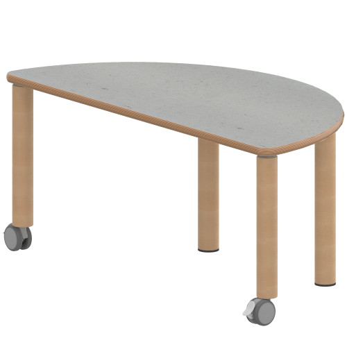 Produktinformationen "Tisch ZALOTTI mit Linoleum-Belag Halbrundtische, Stellfläche B/T: 120x60 cm, Höhen 25…76 cm, Massivholzbeine Ø 60 mm, Fußvariante: fahrbar"