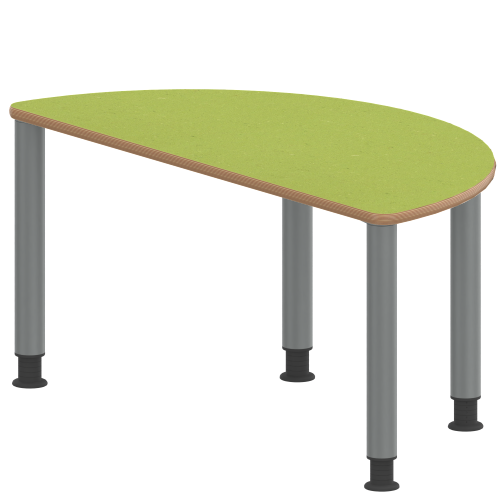 Produktinformationen "Tisch ZALOTTI mit Linoleum-Belag Halbrundtische, Stellfläche B/T: 120x60 cm, Höhen 41…76 cm, Stahlrohrbeine Ø 60 mm, Fußvariante: höhenverstellbar"