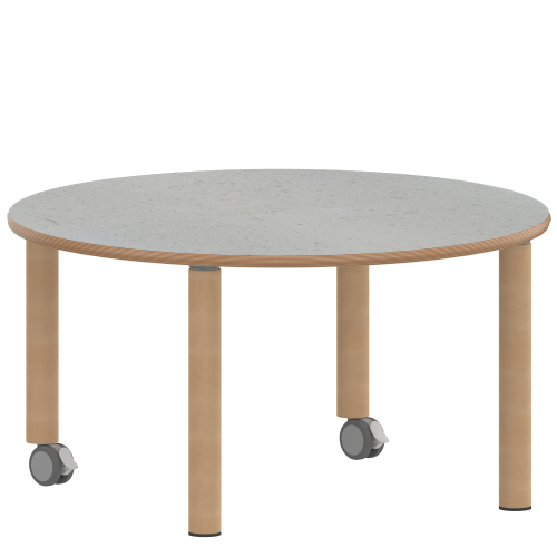Produktinformationen "Tisch ZALOTTI mit Linoleum-Belag Rundtische, Durchmesser: 100 cm, Höhen 25…76 cm, Massivholzbeine Ø 60 mm, Fußvariante: fahrbar"