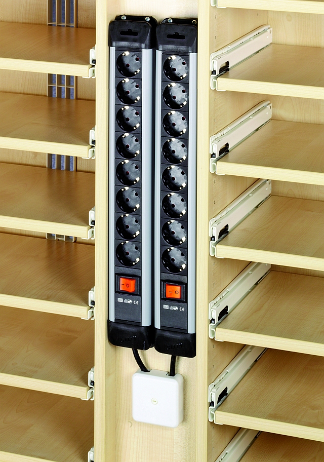 Platz für bis zu 16 Latops bietet unser Laptop-Locker. Die Geräte können bis 17 Zoll Bildschirmgröße besitzen um bequem in den einzelnen Fächern verstaut zu werden. Selbstverständlich sind Steckdosen im Holzkorpus integriert. Es sind außerdem verschiedene Korpusdekore verfügbar, bitte wählen Sie oben rechts Ihr Wunschdekor. Natürlich wird der Korpus mit hochwertigen Transportrollen geliefert, damit Türschwellen keine Hindernisse darstellen. Die Außenmaße betragen 135 x 42 x 125 cm (BxTxH).