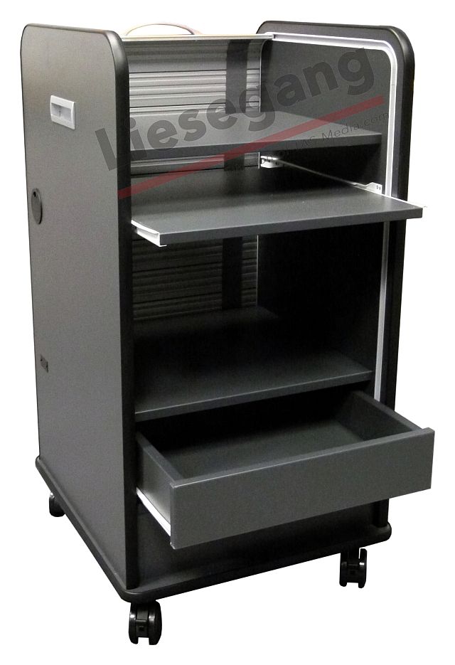 Produktinformationen "Medienwagen mit silbernem Rollo"